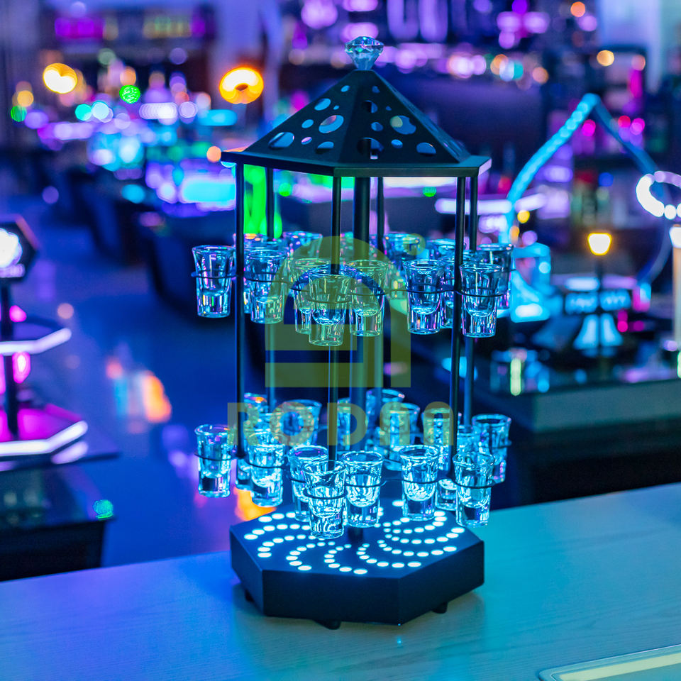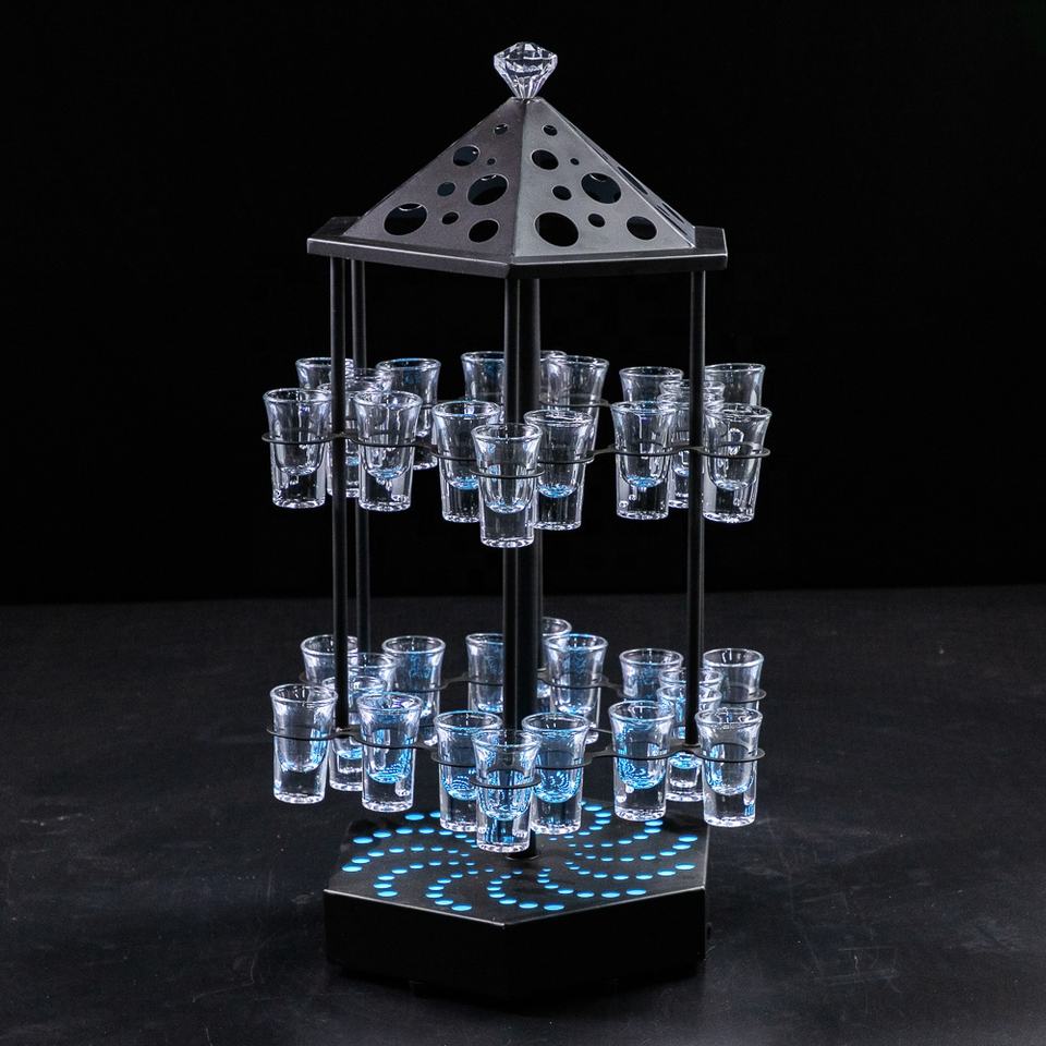 Rodnn LED Acrílico Girar Vaso de chupito Bandeja de servicio Soporte de vidrio