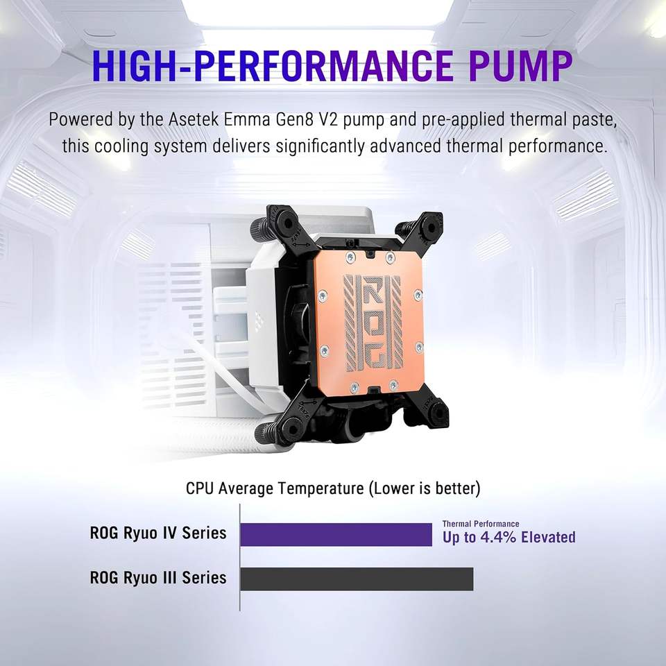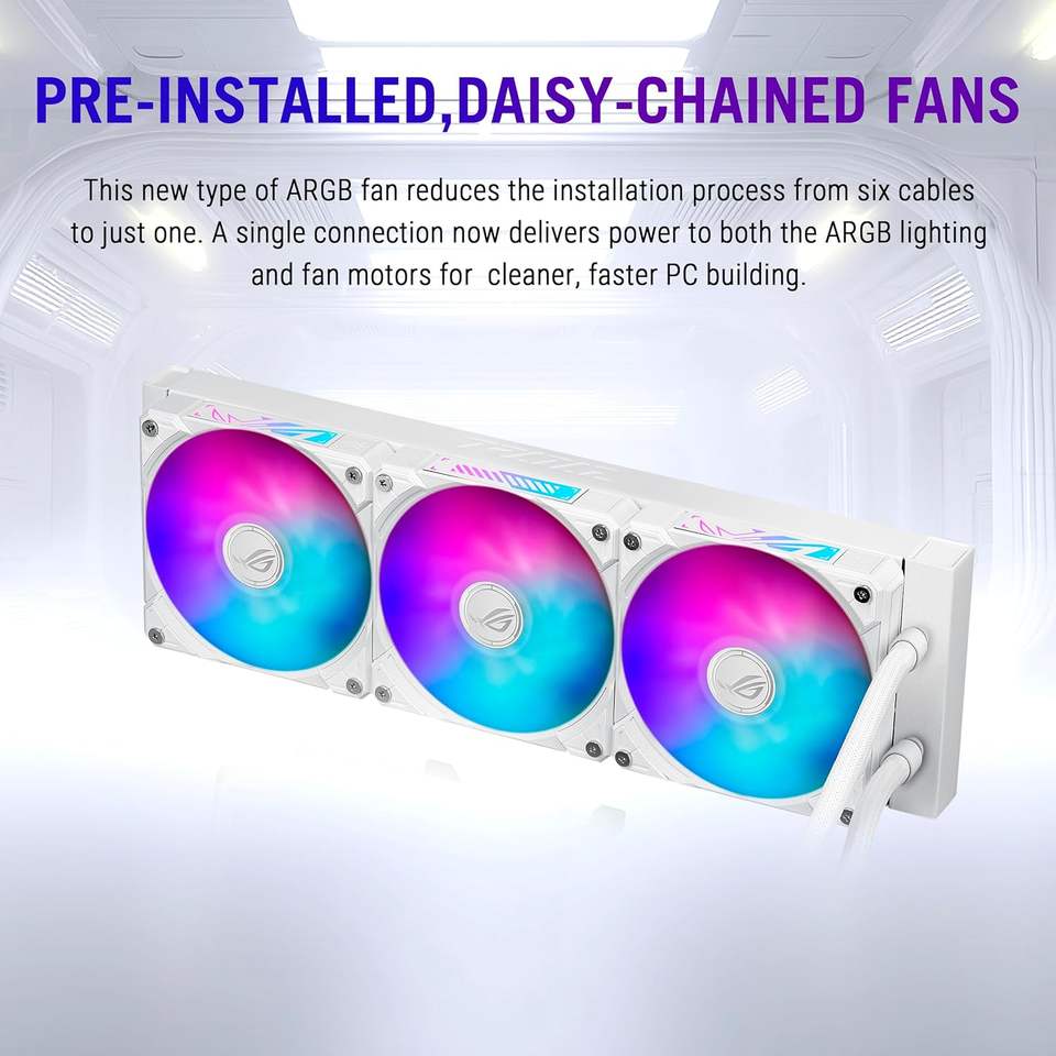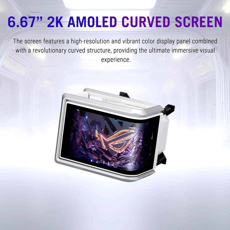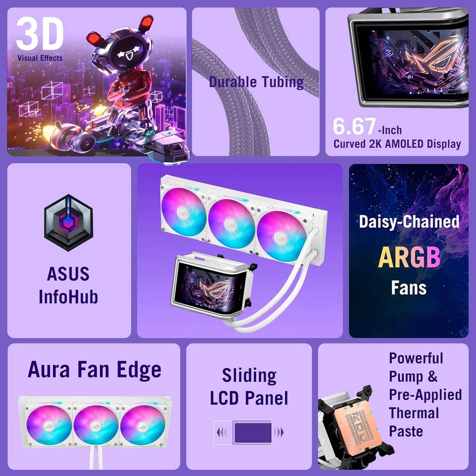 Ventilador Rog Ryujo IV 360 ARGB Blanco con Pantalla AMOLED Curva de 6.67 Pulgadas, Rodamiento Fluido, Disipador de Calor de Cobre y Aluminio para Refrigeración de Juegos