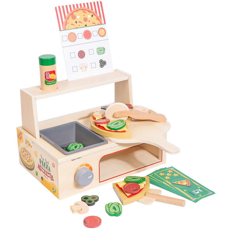 Juego de cocina de simulación de rol, Juguetes de horno de simulación, juguete de aprendizaje para niños, juego educativo de corte de Pizza, juguete de juego de rol de madera para niños