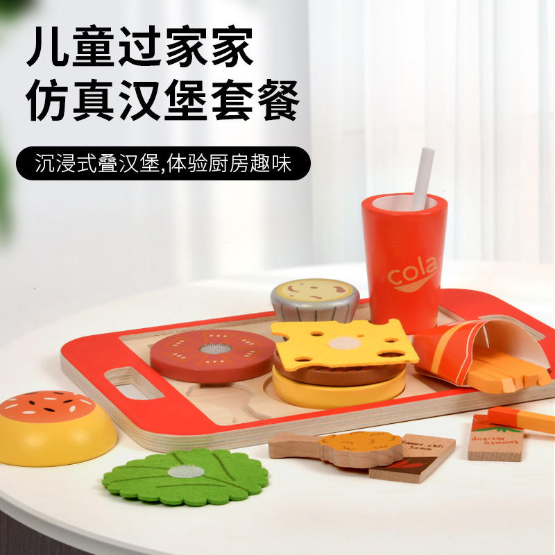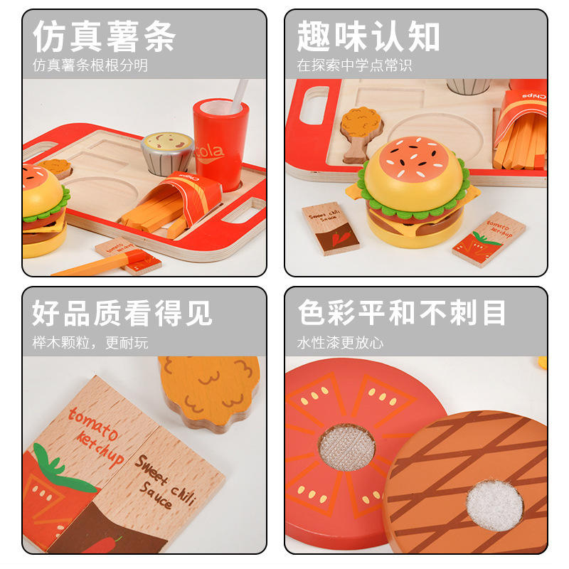 Juego de simulación de rol para niños, juego de hamburguesas de simulación de aprendizaje, juguetes educativos de madera para comida rápida para niños, juguete de cocina con patatas fritas