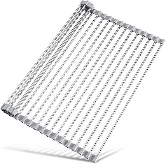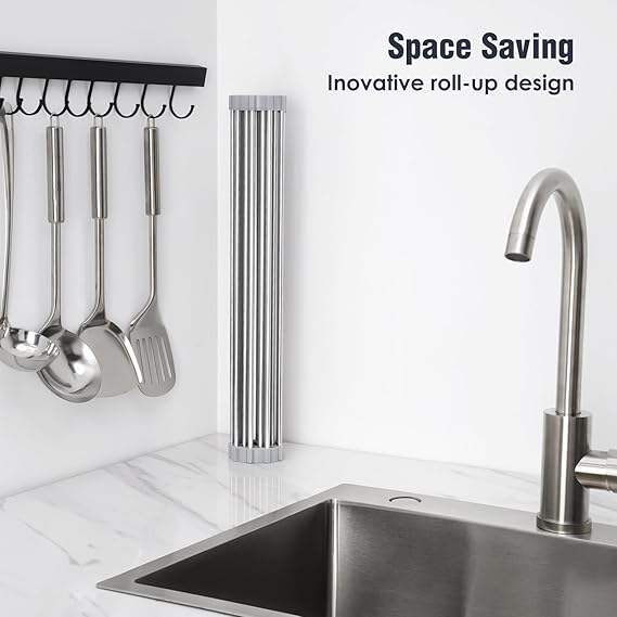 Escurridor de Platos Enrollable, Cubierta para Fregadero, Organizador Multiusos para Fregadero de Cocina, Plegable, de Acero Inoxidable, Ecológico, Desmontable