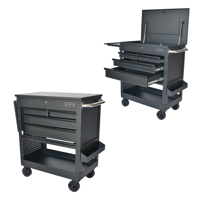 Carro de Servicio con Ruedas CSPS, Capacidad 320kg, 84cm, Cerradura con Llave, 4 Cajones, Rieles Deslizantes, Acero con Recubrimiento en Polvo, Ruedas Modernas, OEM, 2 Años de Garantía
