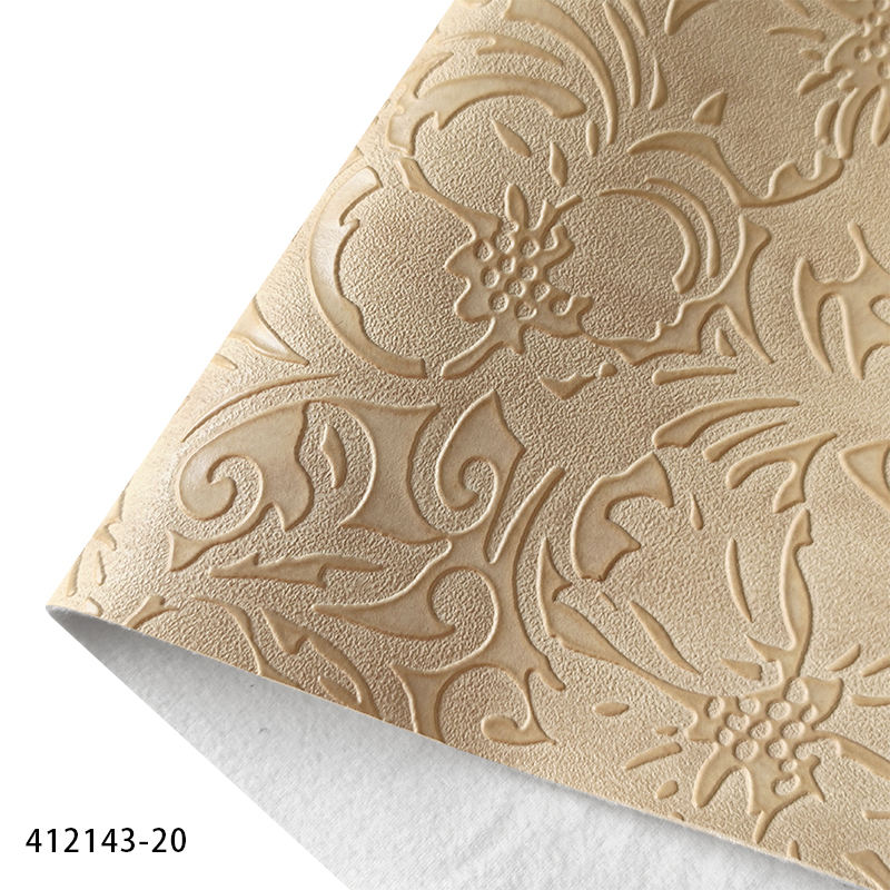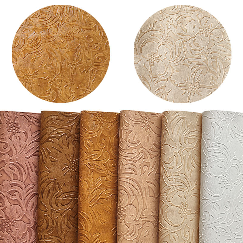 Diseño de tallado romano PU cuero Artificial sintético flores hoja en relieve polipiel tela de vinilo marrón para bolsos/carteras/zapatos
