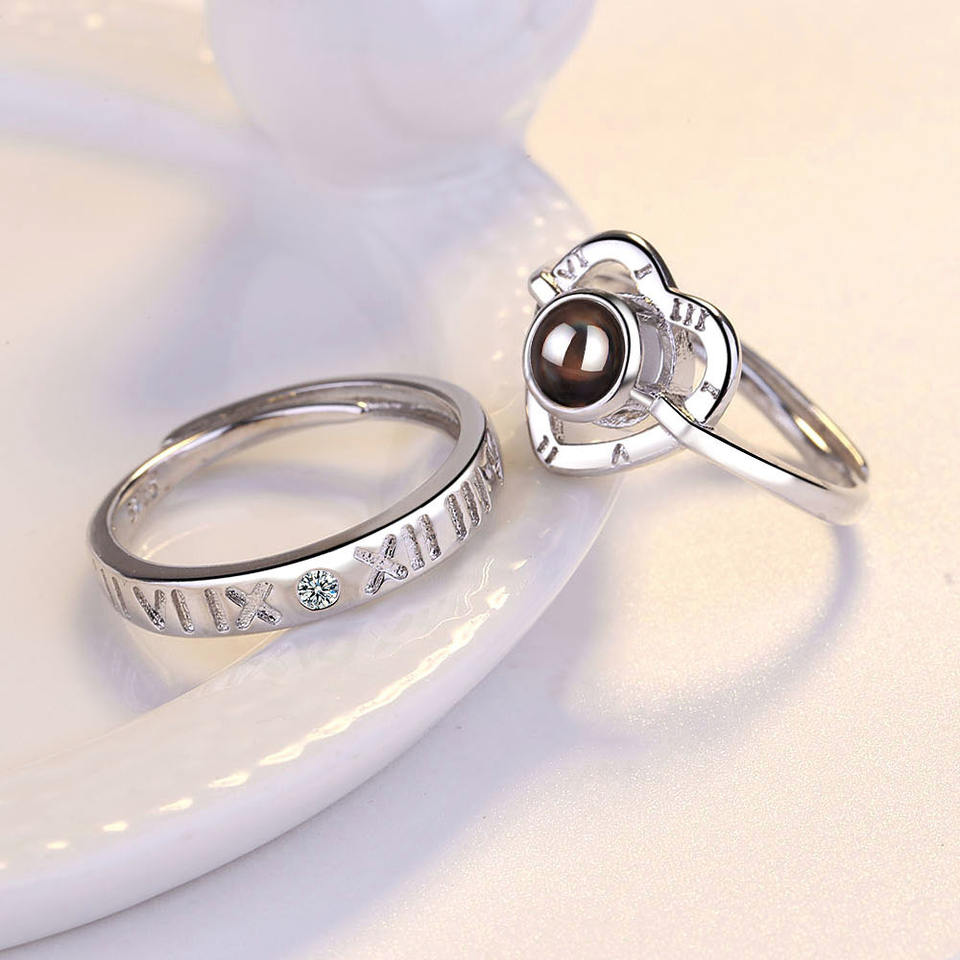 Anillos de proyección de corazón con número romano para mujer, regalos de amor del Día de San Valentín, 100 idiomas, regalos para mujer