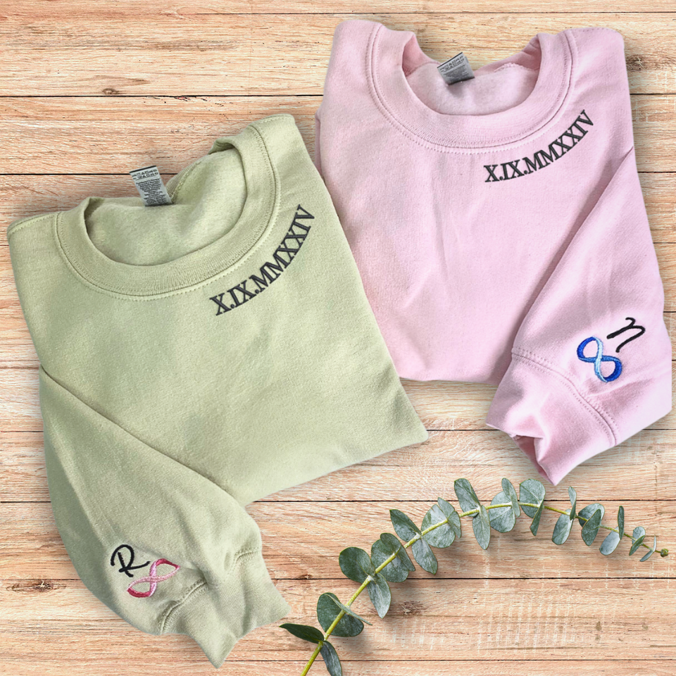 Números romanos Bordado 3D en el escote Sudadera de punto o Sudadera con capucha Insignia personalizada Regalos de San Valentín para él y para ella