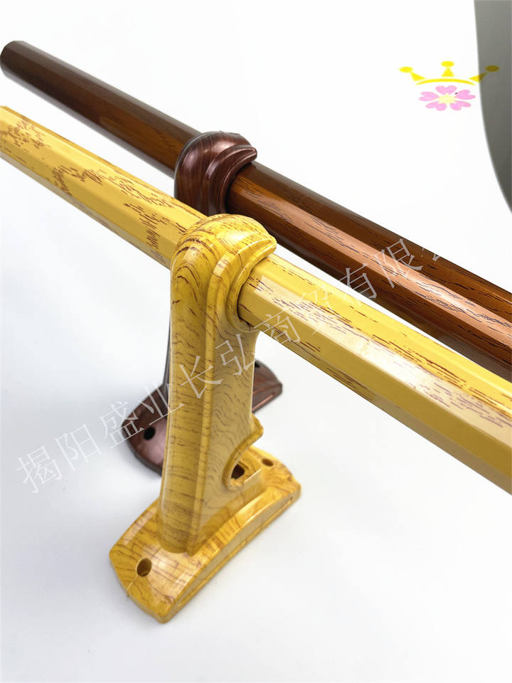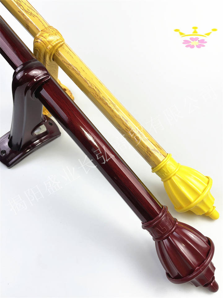 Varilla romana de alta calidad, accesorios de cortina de luz de alto grado, colgador de cortina, postes de cortina de Color de madera de imitación