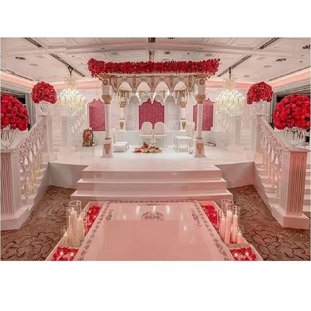 Estilo romano Boda Mandap Cum Stage Nuevo diseñador Boda Fibra blanca Mandap Estilo moderno Boda Mandap Decoración