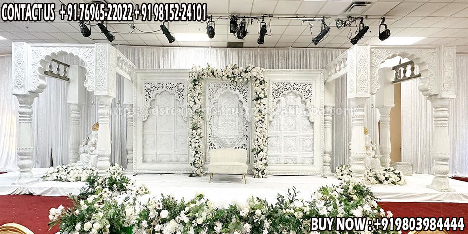Escenario de Recepción con Temática de Boda Romana, Elegante Escenario Blanco para Bodas, Decoración de Escenario para Eventos de Boda Occidental