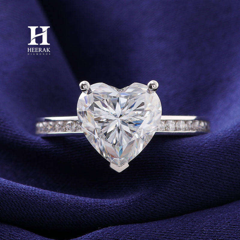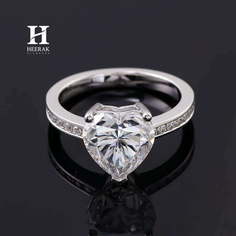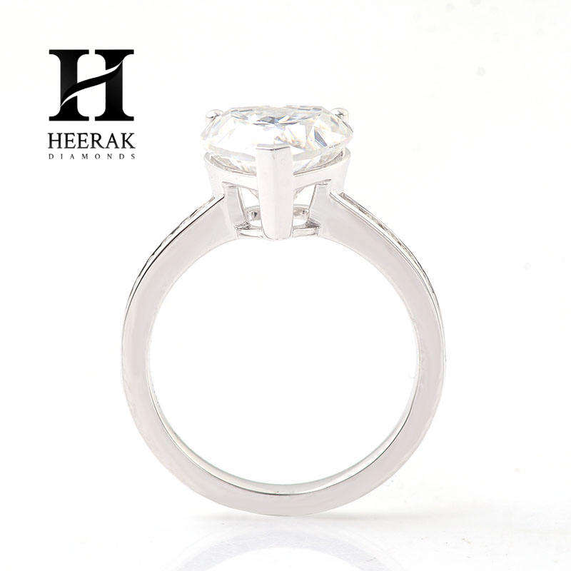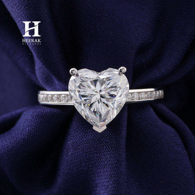 Anillo de Compromiso Romántico con Diamante Cultivado en Laboratorio de Corte Corazón de 2ct 3ct, Oro Blanco de 14K, Banda Pavé con Incrustaciones, Anillo de Boda con Forma de Corazón