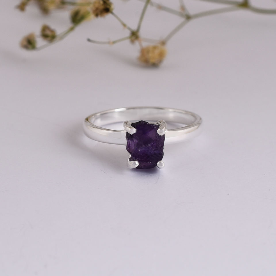 nombre o palabras:Anillo de plata de ley 925, anillo de piedras preciosas, anillo de amatista