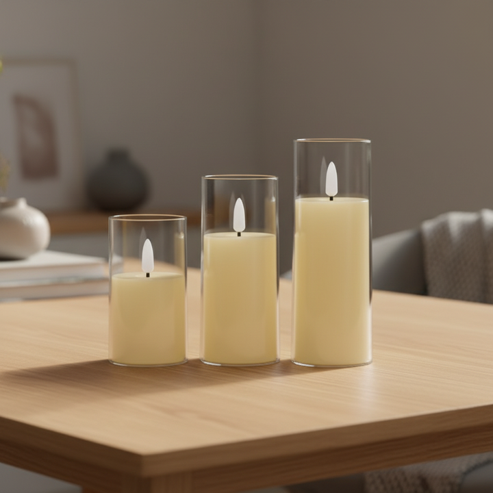 Vela LED con Simulación de Llama de Vela Realista, con Pilas Integradas, en Vaso de Acrílico, para Crear una Atmósfera Romántica