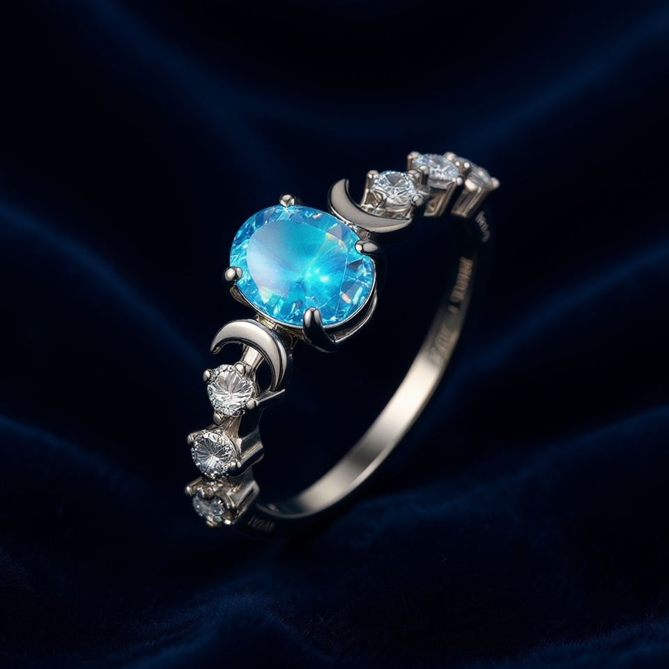Anillo romántico de ópalo azul y diamantes para mujer, banda de plata con diamantes de corte brillante redondo, joyería de compromiso de Eva O'neill