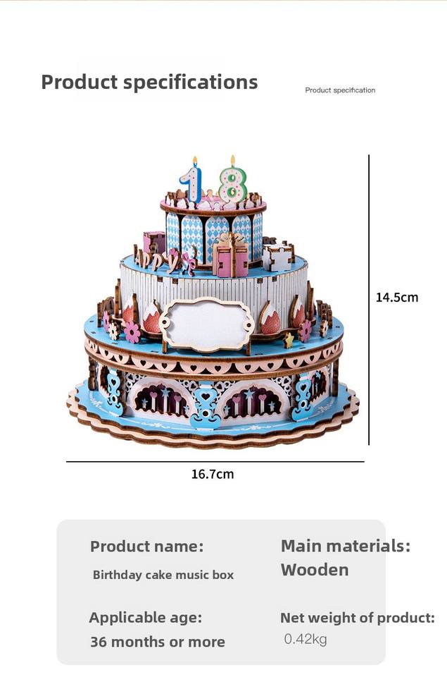 Caja de música con forma de tarta de cumpleaños.Tipo