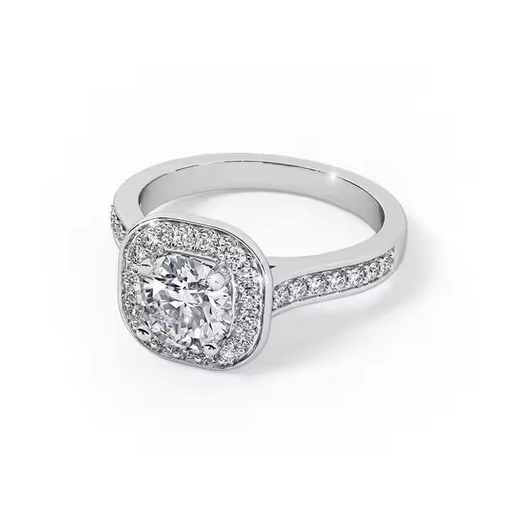 Romántico Halo Set Radiant Cut Lab Grown Diamond 14K Oro sólido IGI Certificado Unisex Compromiso Anillo de bodas para aniversario