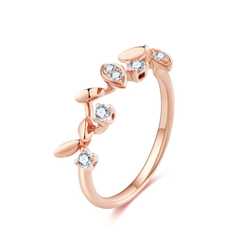 Anillo de diseño de hoja simple de oro rosa sólido de 18 quilates de estilo romántico con diamante natural para boda o regalo de fiesta para mujer
