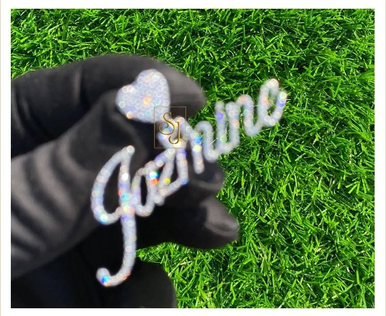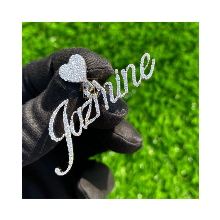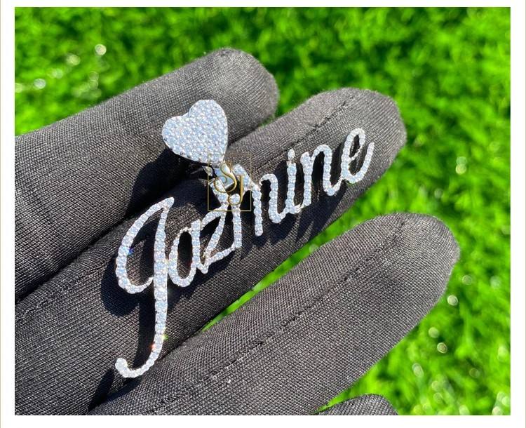 Collar con Colgante de Plata 925 con Baño de Rodio, Estilo Romántico, con Nombre en Cursiva, Diamante Cultivado en Laboratorio, Cierre de Corazón con Cristales, Regalo Personalizado