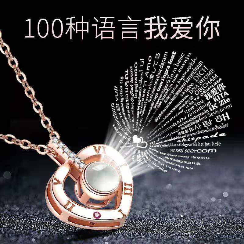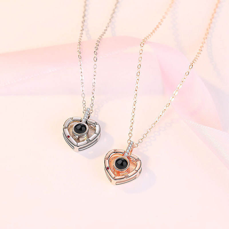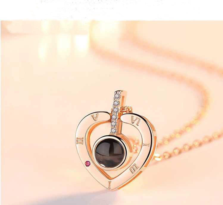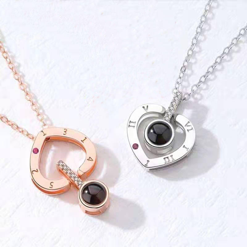 Estilo romántico envío rápido letra romana grabado corazón proyección collar 100 idiomas