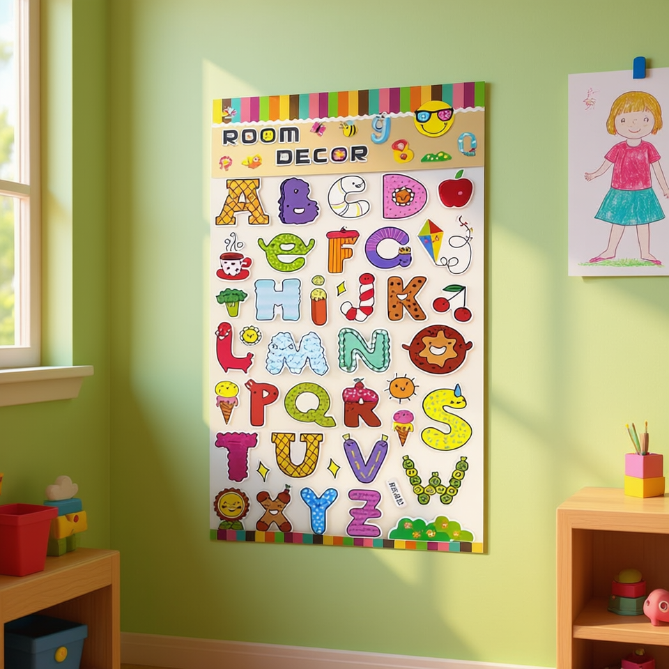 Pegatinas decorativas de alfabeto y números para habitación infantil, calcomanías de pared de 73x40cm