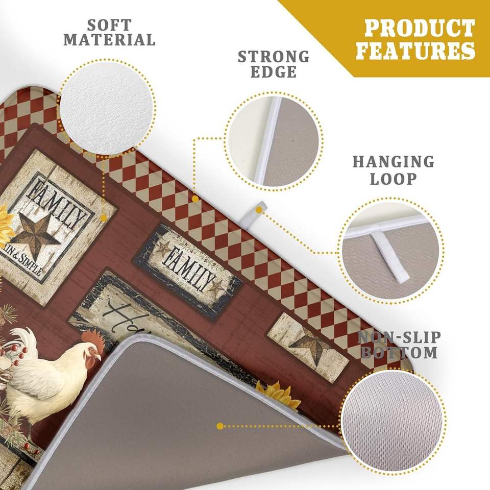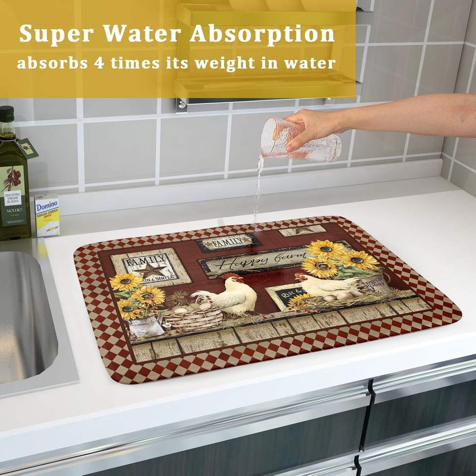 Tapete Escurridor de Platos Rooster de 18x24 Pulgadas, de Microfibra Absorbente de Secado Rápido, Accesorio para Encimera de Cocina, Estilo Rústico con Diseño de Gallina