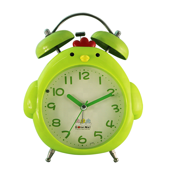 Gallo en forma de dibujos animados de alarma de reloj con dos Bell