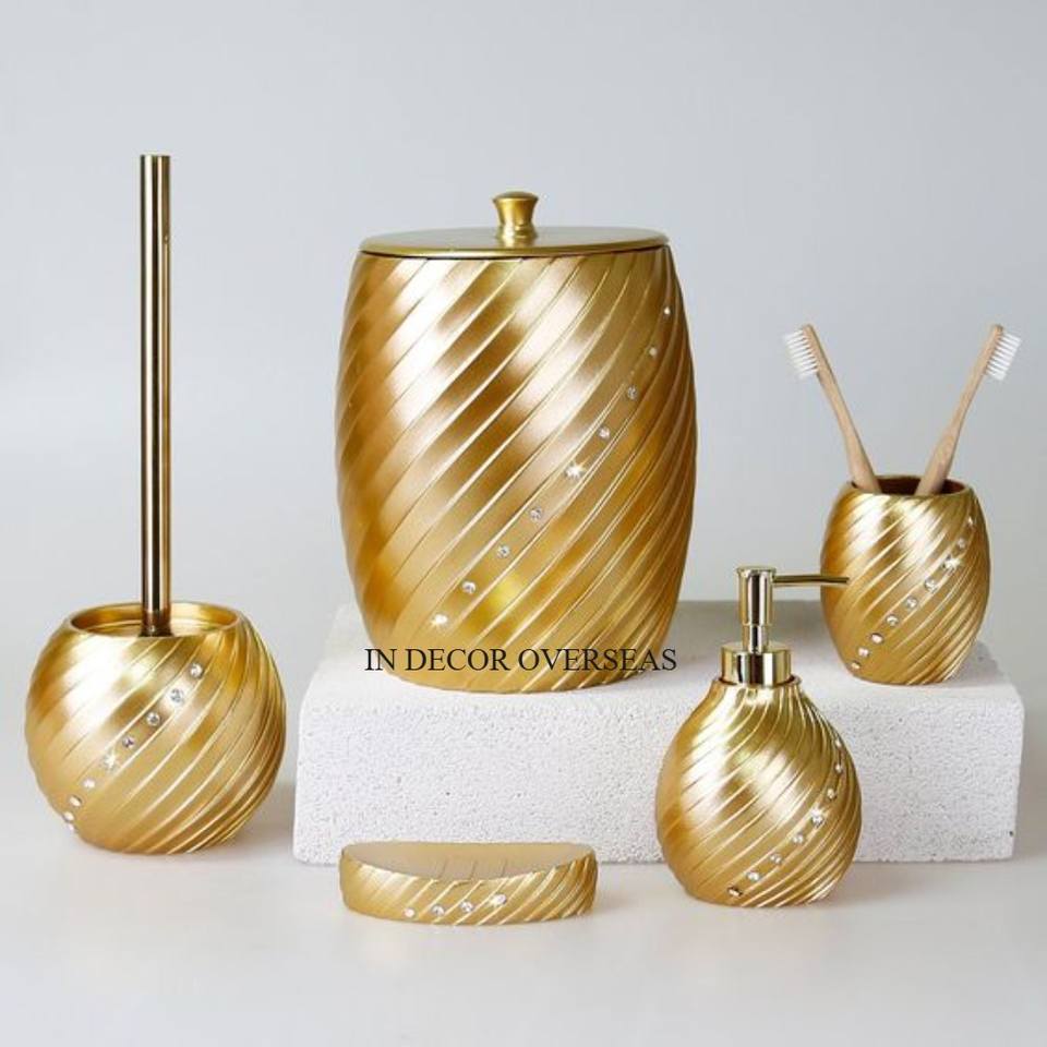 Juego de accesorios de baño chapados en oro de Metal de alta calidad de diseñador de cuerda, dispensador de jabonera, soporte para toallas de papel, suministros