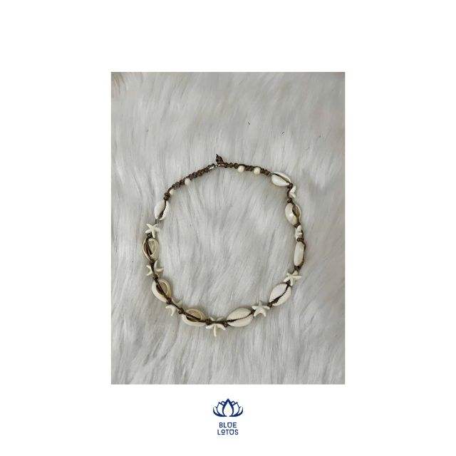 Collar de concha de cuerda Gargantilla de concha marina tejida a mano Collares de estilo bohemio Artesanía Loto azul Vietnam