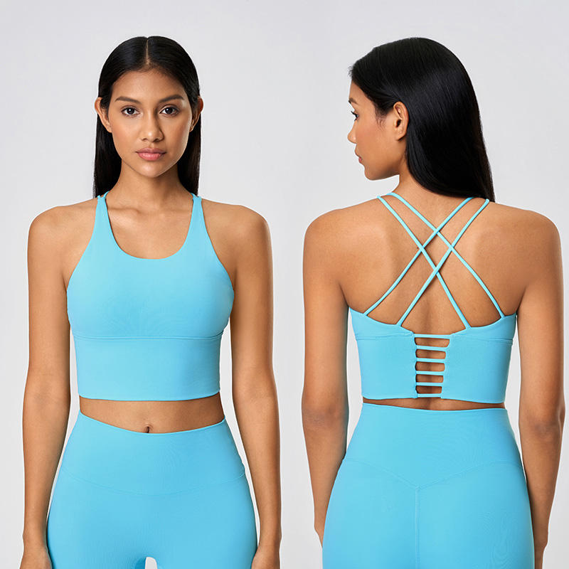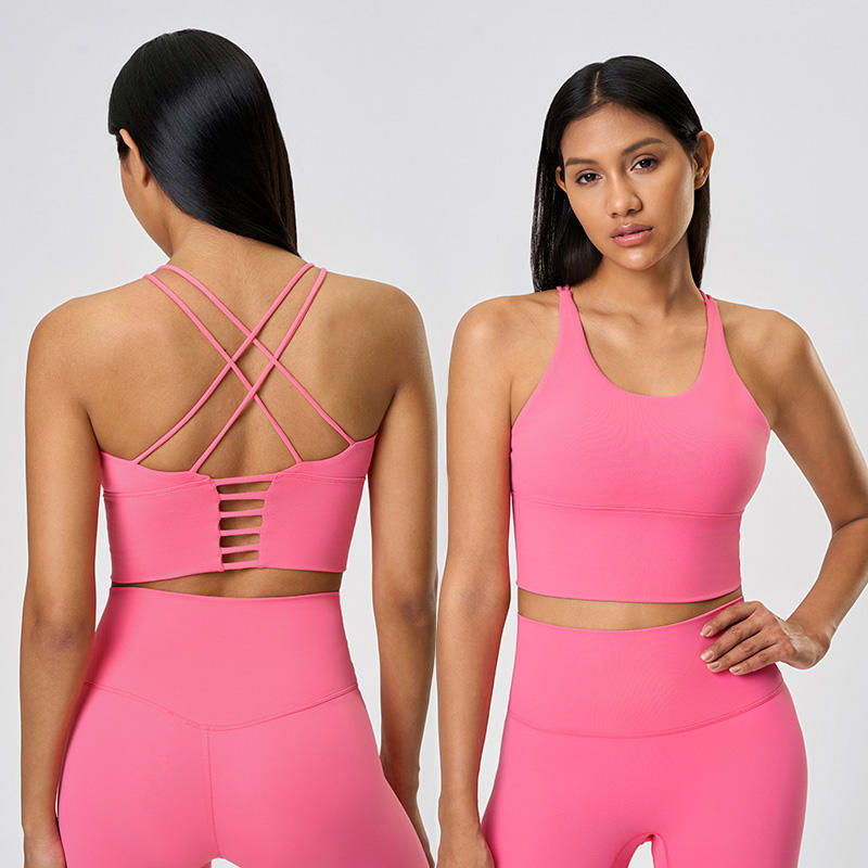 Roregal 2025 Nuevo Estilo Top Deportivo de Yoga y Fitness para Mujer, Color Sólido, Espalda Cruzada, Antichoque, con Almohadillas para el Pecho