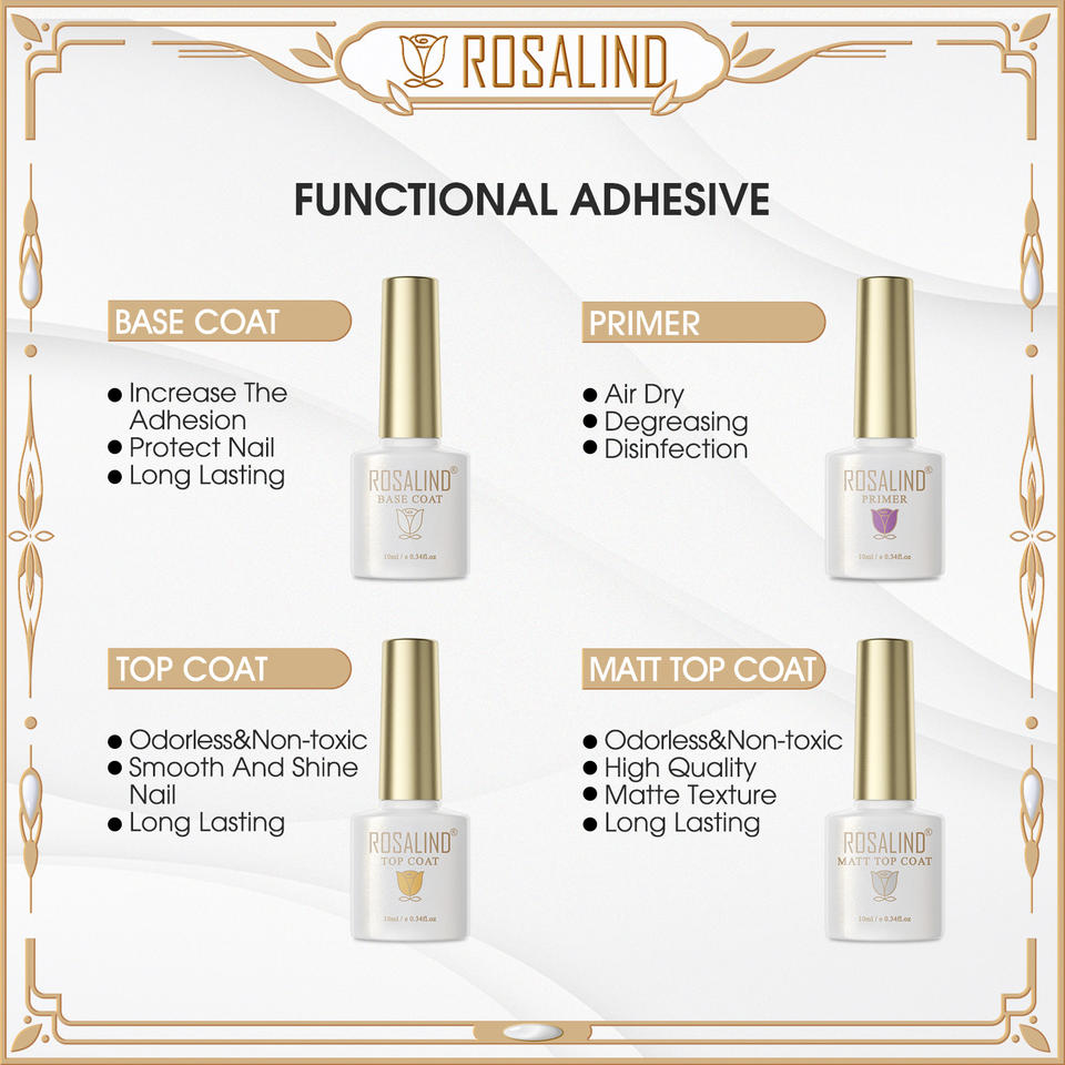 Rosalind-esmalte de gel de secado rápido, textura mate, conjunto de capa superior y base, larga duración