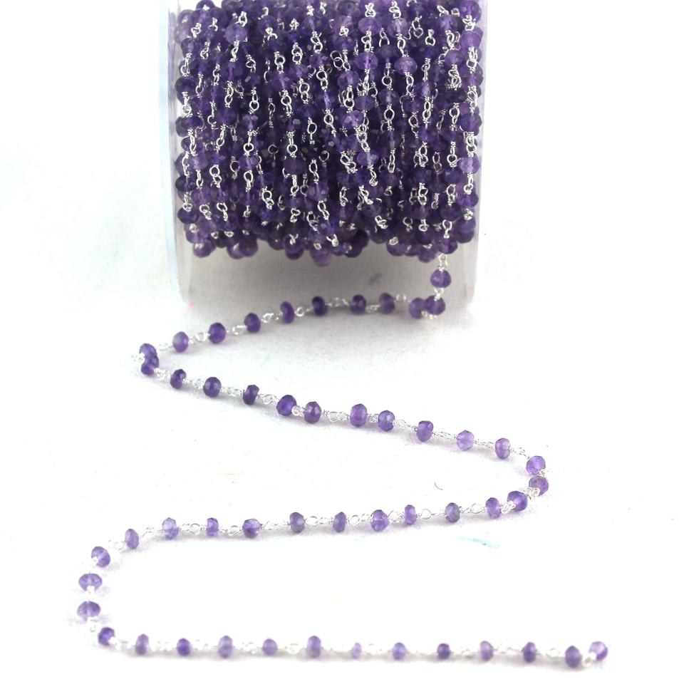 Cadena de cuentas de Rosario, amatista púrpura Natural, Rondelle, piedra preciosa facetada, grado AAA, fabricación de chispas, joyería DIY