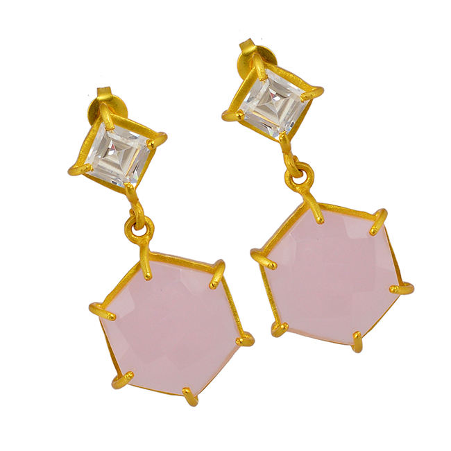 Piedra:Calcedonia rosa, Zirconia cúbica