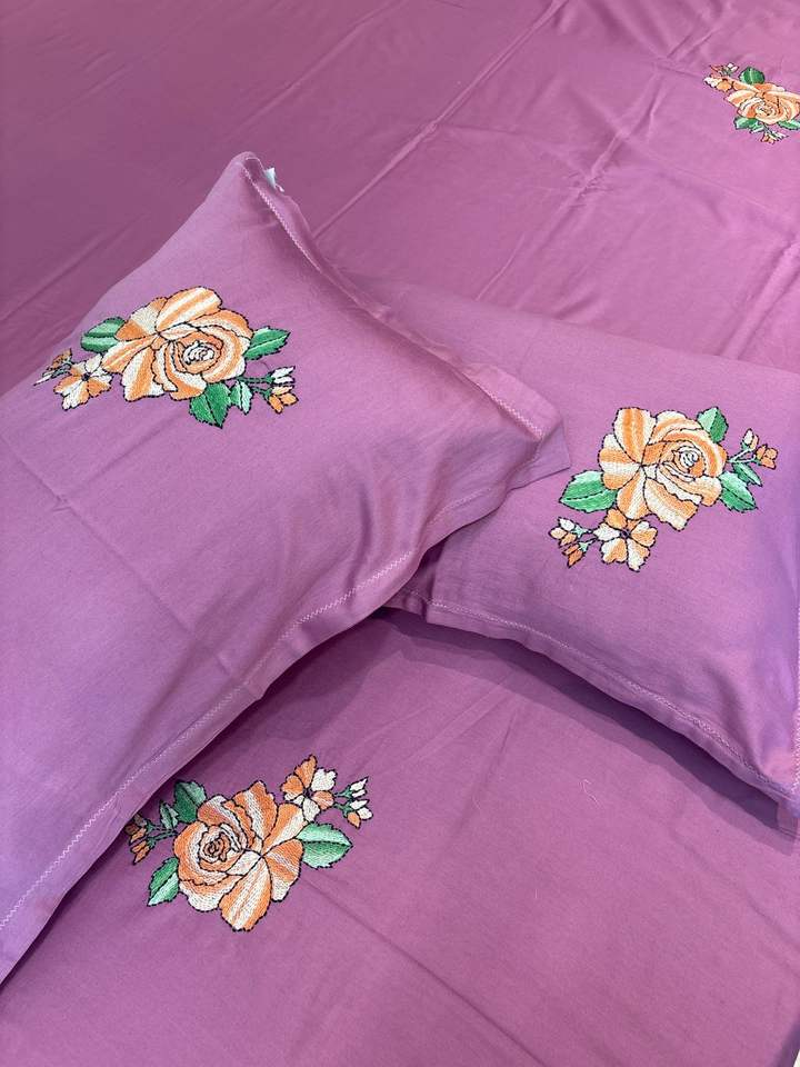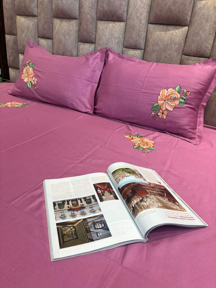 Juego de Sábanas de Algodón Bordado con Diseño Floral de Rosas en Color Vino, Juego de Ropa de Cama Suave y Lujosa, Tamaño Queen, Alta Calidad