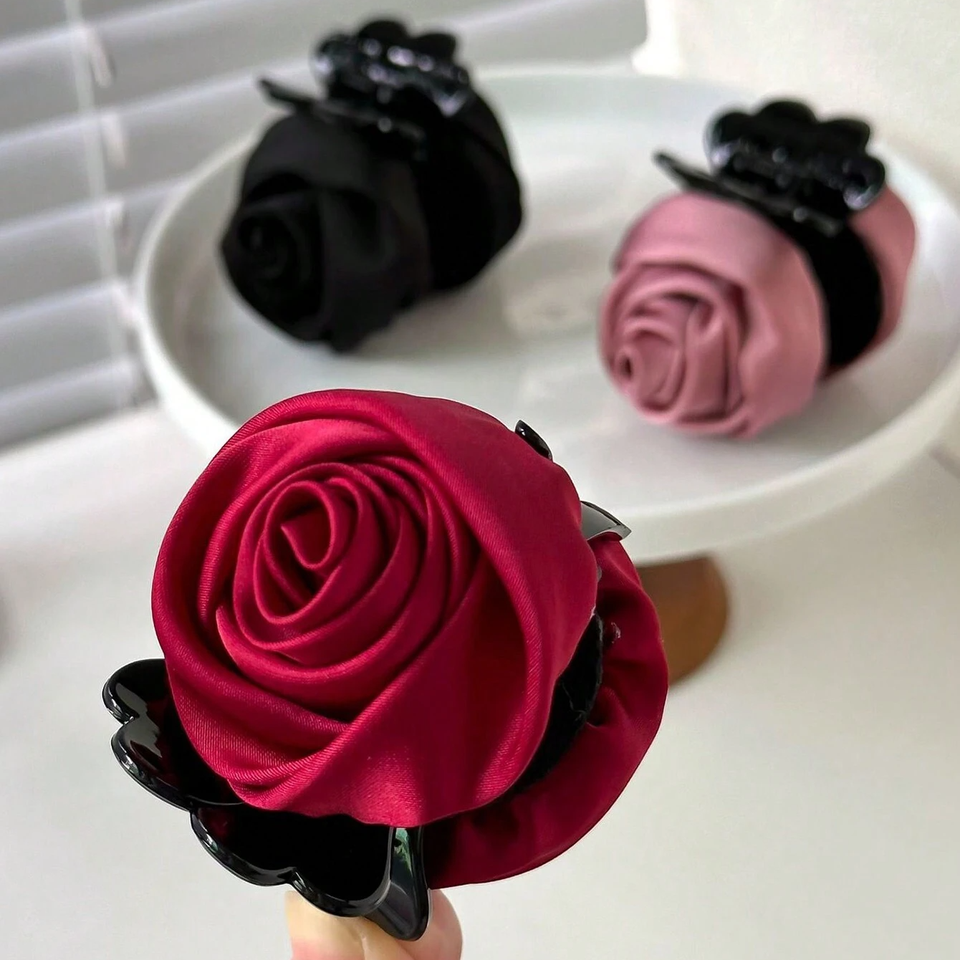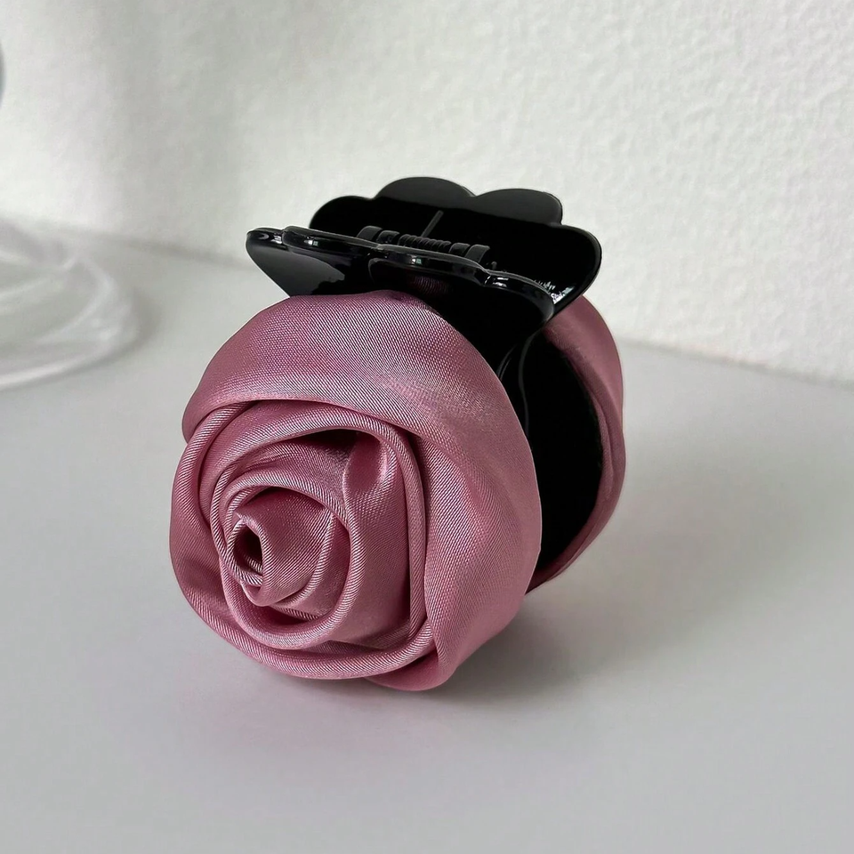 Rosa flor mujer temperamento superior simple chica francesa borde quemado flores garras para el cabello