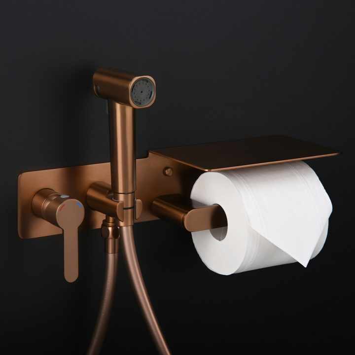 Rociador de Bidé Multifunción de Latón Color Oro Rosa, con Soporte para Toallas de Papel, Diseño Moderno de Pared para Baño, Rociador Vertical