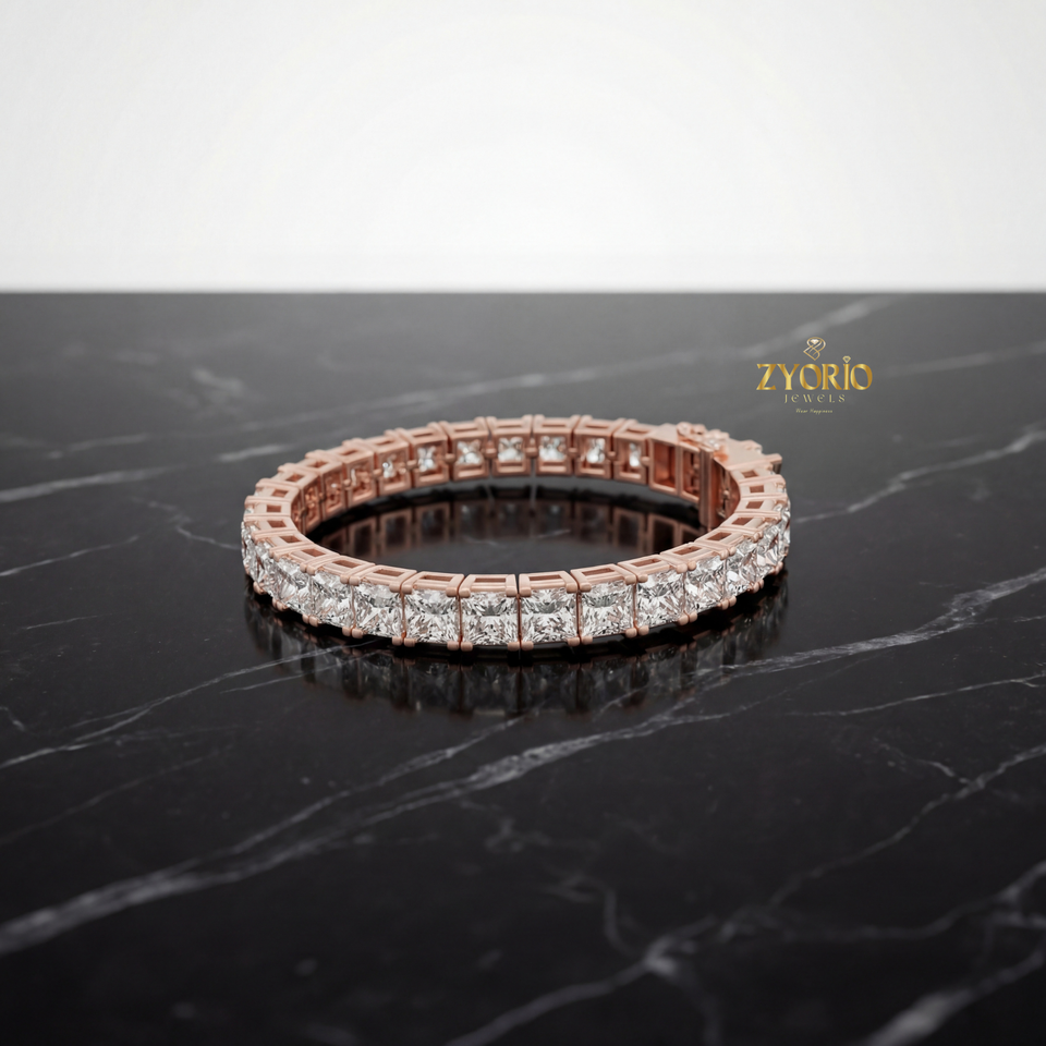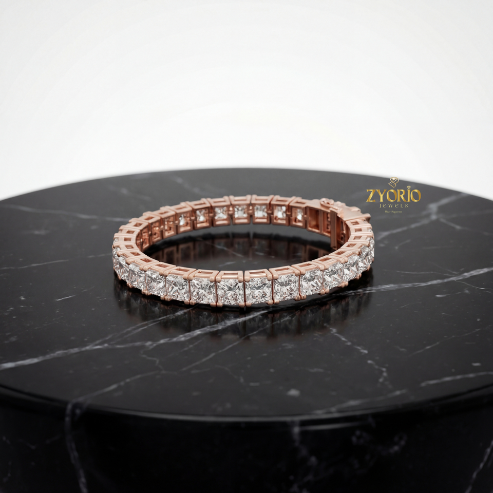 Pulsera de Cadena Clásica Eternity de Plata de Ley en Oro Rosa para Mujer, con Diamantes Cultivados en Laboratorio, Elegante, Brillante, de Lujo, Regalo de Boda