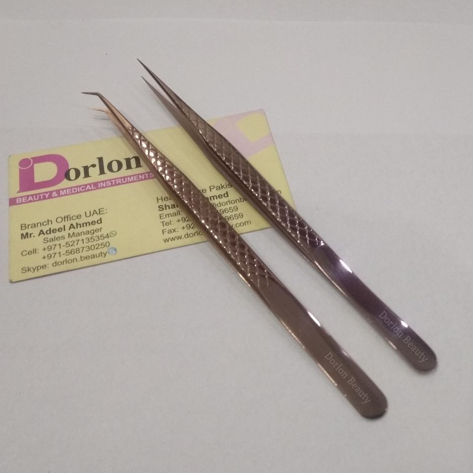14cm larga recta y 45 grados de oro rosa pinzas de pestañasNombre del producto