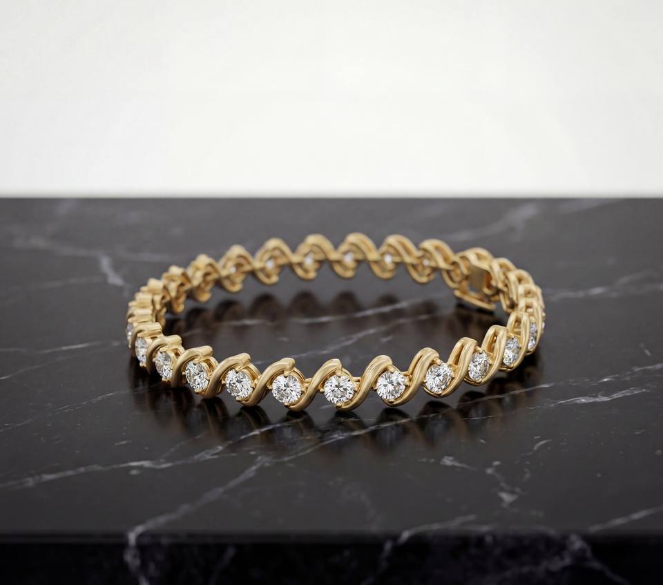 Pulsera de Plata de Ley Chapada en Oro Rosa con Diseño Clásico Elegante de Ondas y Diamantes Cultivados en Laboratorio, Joyería de Lujo Brillante para Aniversario