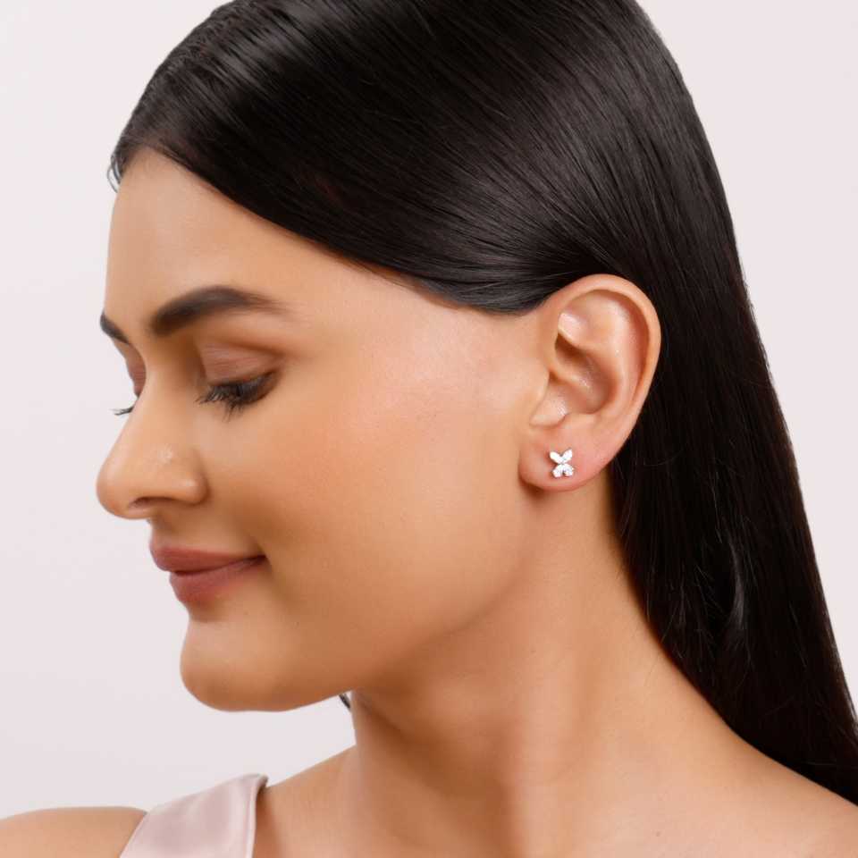 Pendientes de diamantes de laboratorio de mariposa de filigrana de oro rosa