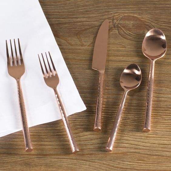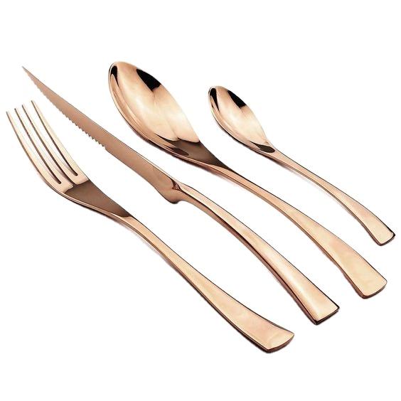 Juego de Cubiertos de Acero Inoxidable Ecológico de Lujo Moderno en Oro Rosa para Bodas y Cenas