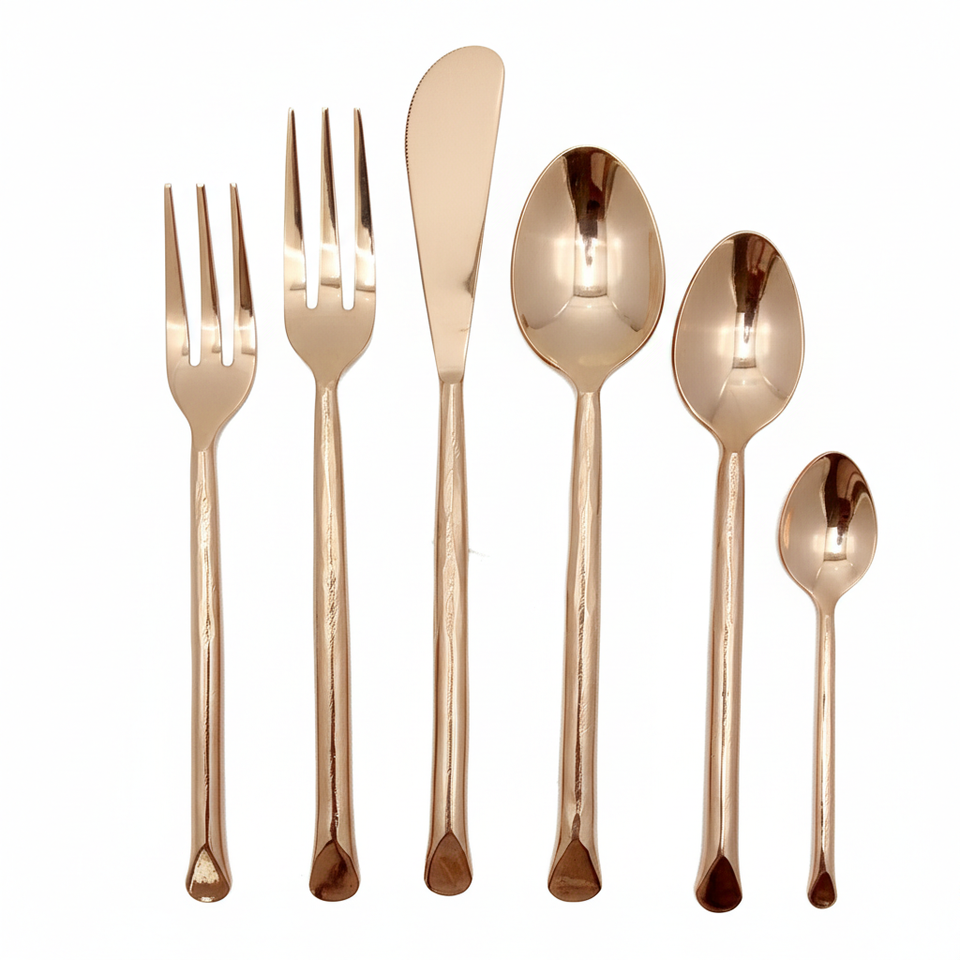 Juego de cubiertos forjados a mano en oro rosa (para 4, 5 y 20 personas)