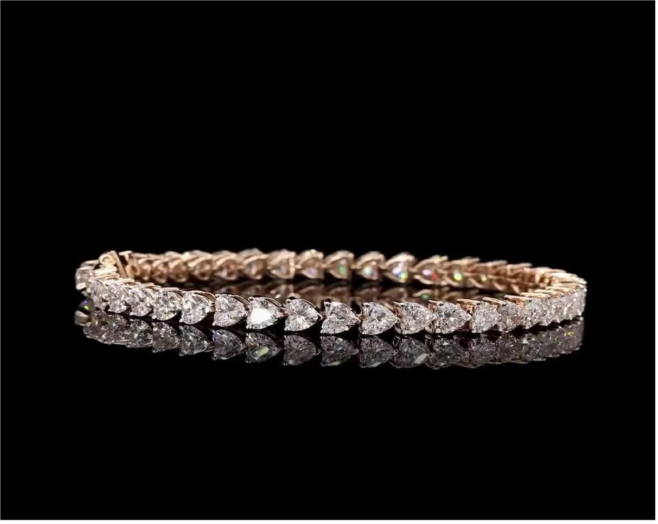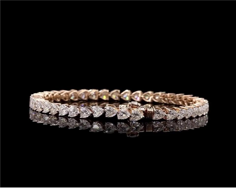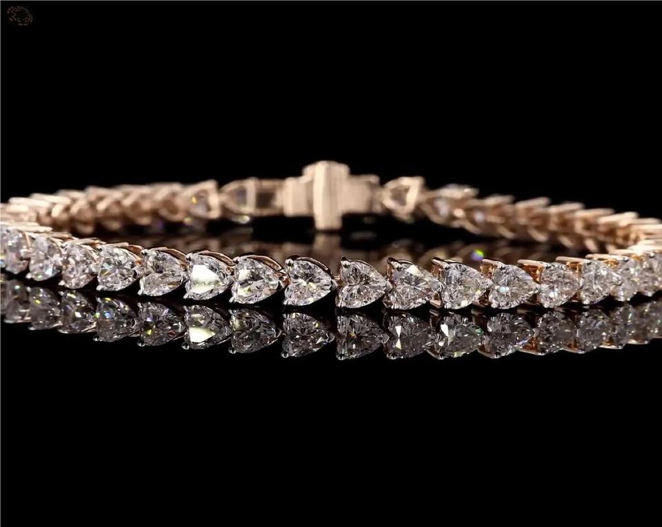 Pulsera de Oro Blanco de Lujo para Mujer, Elegante Oro Rosa con Moissanita en Corte Corazón, Brillante, Regalo de Aniversario o Boda, Oro de 14K