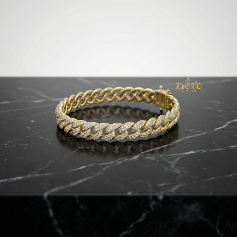Pulsera de Eslabones Cubanos con Diamantes Cultivados en Laboratorio, Chapada en Oro Rosa, Plata de Ley, Joyería Clásica para Mujer, Regalo para Boda, Aniversario o Fiesta