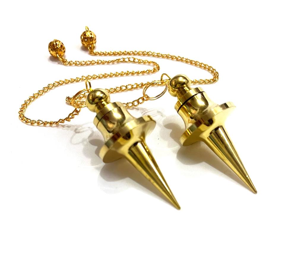 Péndulo metálico de oro rosa con 16 placas, péndulo metálico de latón para meditación Bohemia, al por mayor