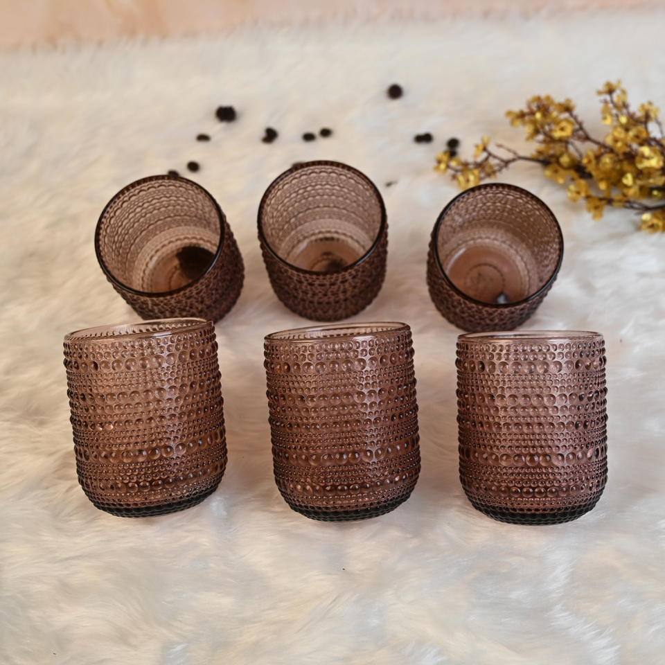 Juego de 6 Vasos de Vidrio con Patrón de Gotas de Lluvia en Relieve, Color Oro Rosa, Estilo Vintage, para Jugo o Vino