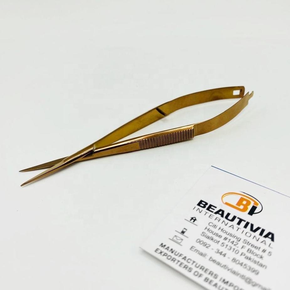 Tijeras de resorte de plasma de oro rosa multifuncional Tijeras de manicura rusas puntiagudas extra afiladas con tijera de cutícula sostenible