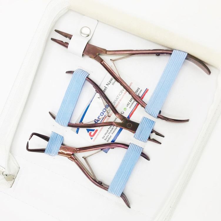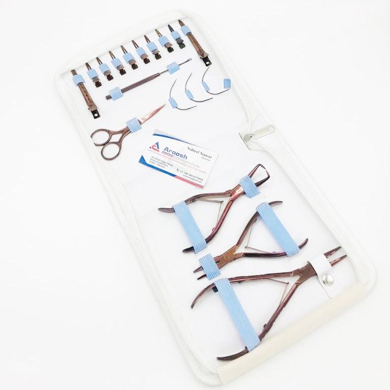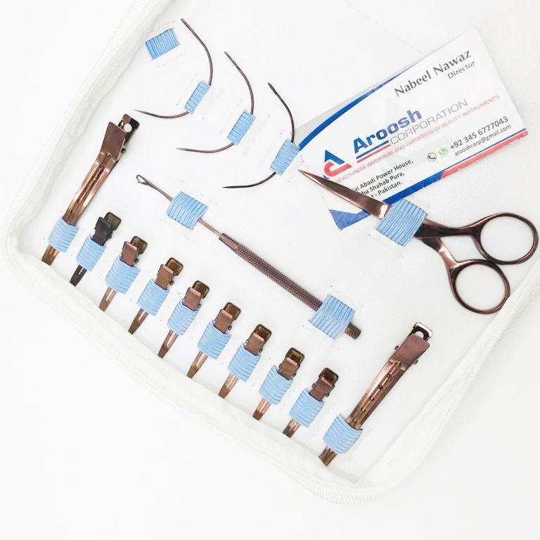 Juego de herramientas de plasma de oro rosa para extensiones de cabello Nano Tip, agujas de gancho de tijera de acero inoxidable para cabello Remy de trama Doble