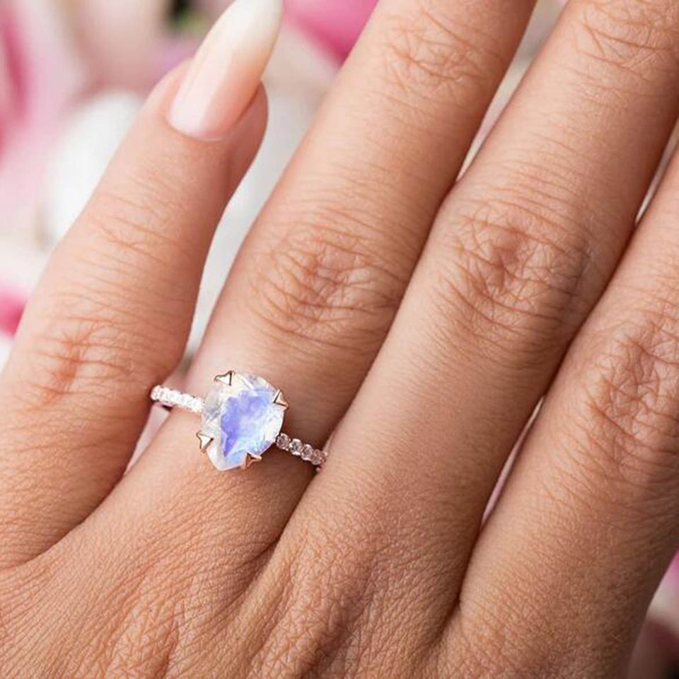 Anillo de piedra lunar de plataMaterial principal de joyería