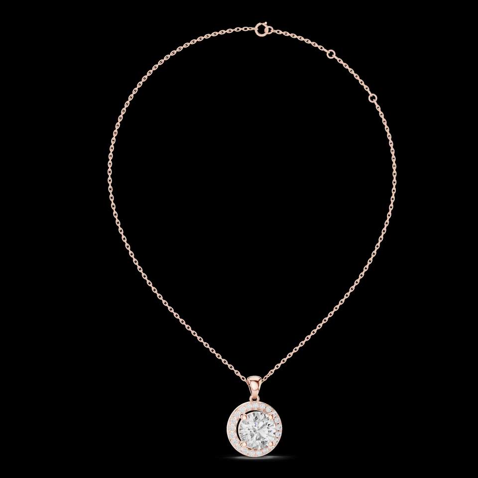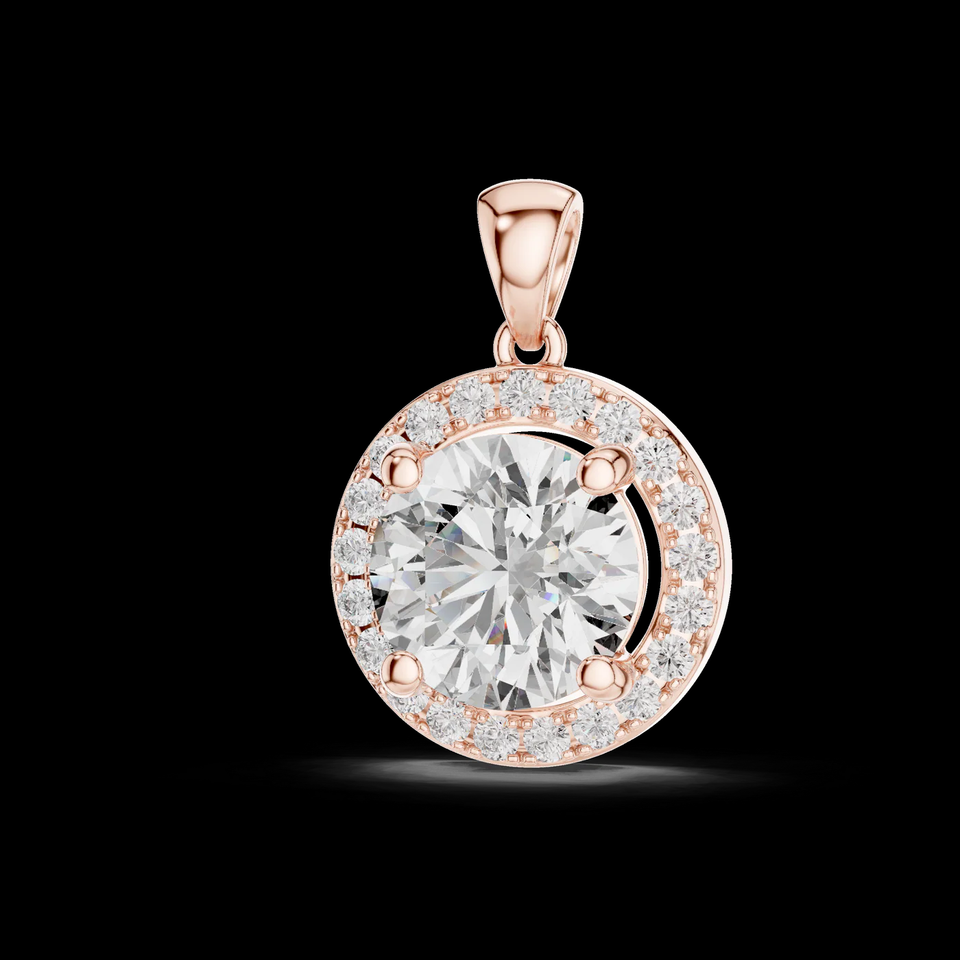 Colgante de Diamante Solitario con Halo en Oro Rosa de 14K/18K, Certificado IGI, Joyería Fina Elegante y de Lujo para Mujer, Brillo Atemporal