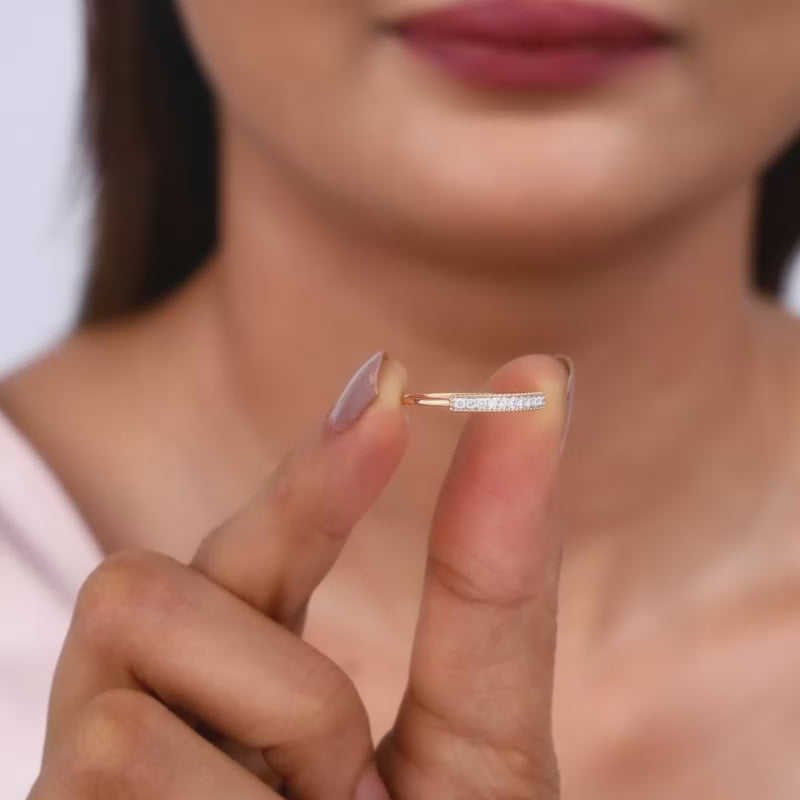 Anillo de diamantes estrías de oro rosa