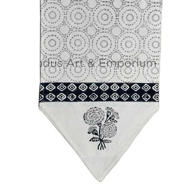 Camino de mesa de algodón con estampado a mano, camino para mesa de comedor, 100% algodón