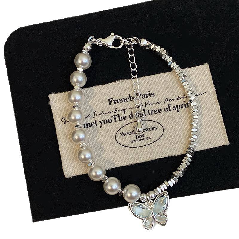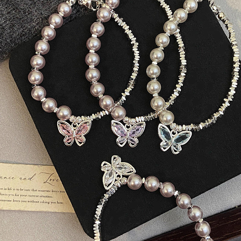 Pulsera de Mariposa con Cuentas Coloridas de Circonio Incrustado con Fragmentos de Plata y Perlas de Imitación de Rosa, Exquisita y Ligera, de Lujo para Mujer